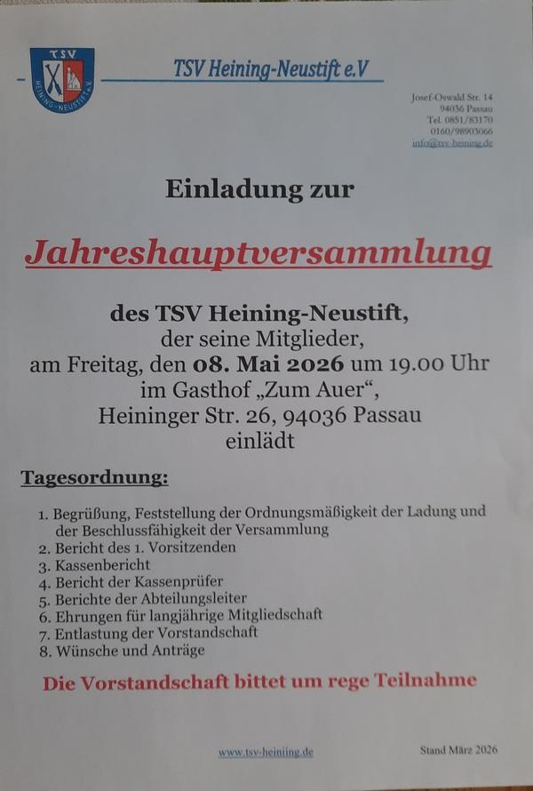 Telefon: +49 851 83170 Mobil: +49 160 98903066 E-Mail: info@tsv-heining.de